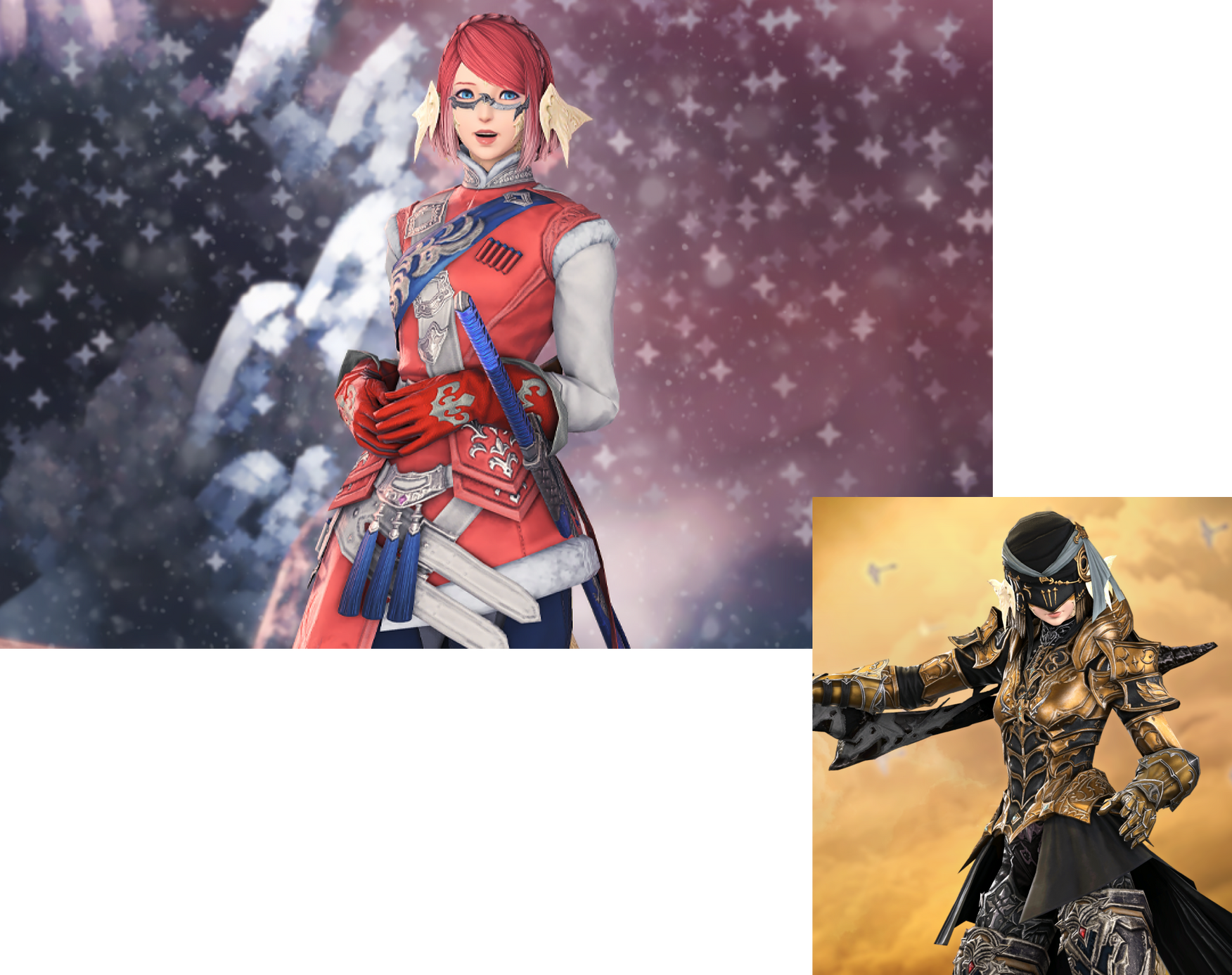 As a past time, I take pleasure in participating in the Final Fantasy XIV creative community through creating glamours, taking screenshots, and doing digital design work. Discover the projects, collaborations, and partnerships I've been involved with.